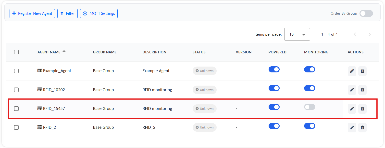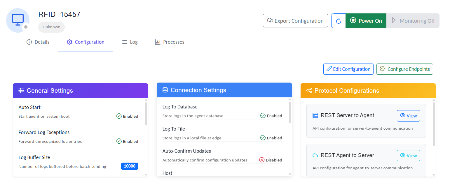 | Powered | Toggles whether the agent is active. When disabled, incoming tag reads will not be processed by the agent. |