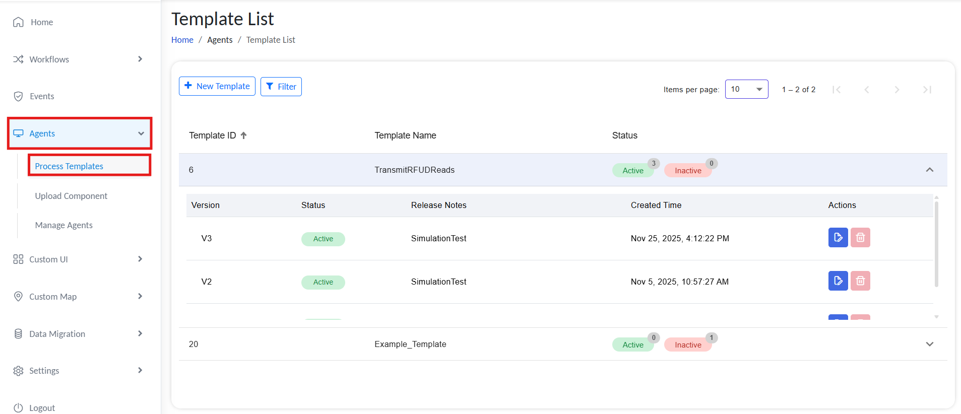 Process Templates are the intelligence blueprints of the RCOM Agent. They define how edge devices (RFID readers, sensors) capture data, how that data is processed locally, and where it is eventually sent. By using a visual, no-code designer, you can standardize complex edge operations across hundreds of agents with a single deployment.