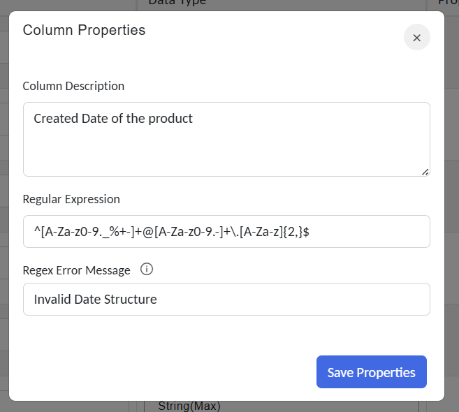 | Column Description | A short description of the column that helps users understand its purpose and content. This is for documentation and reference when working with the Object later. |