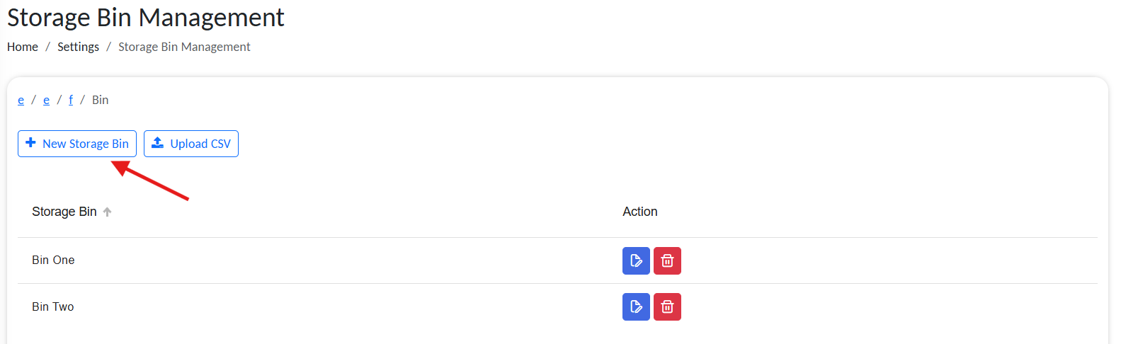 Storage Number → Storage Location → Storage Area → Storage Bin