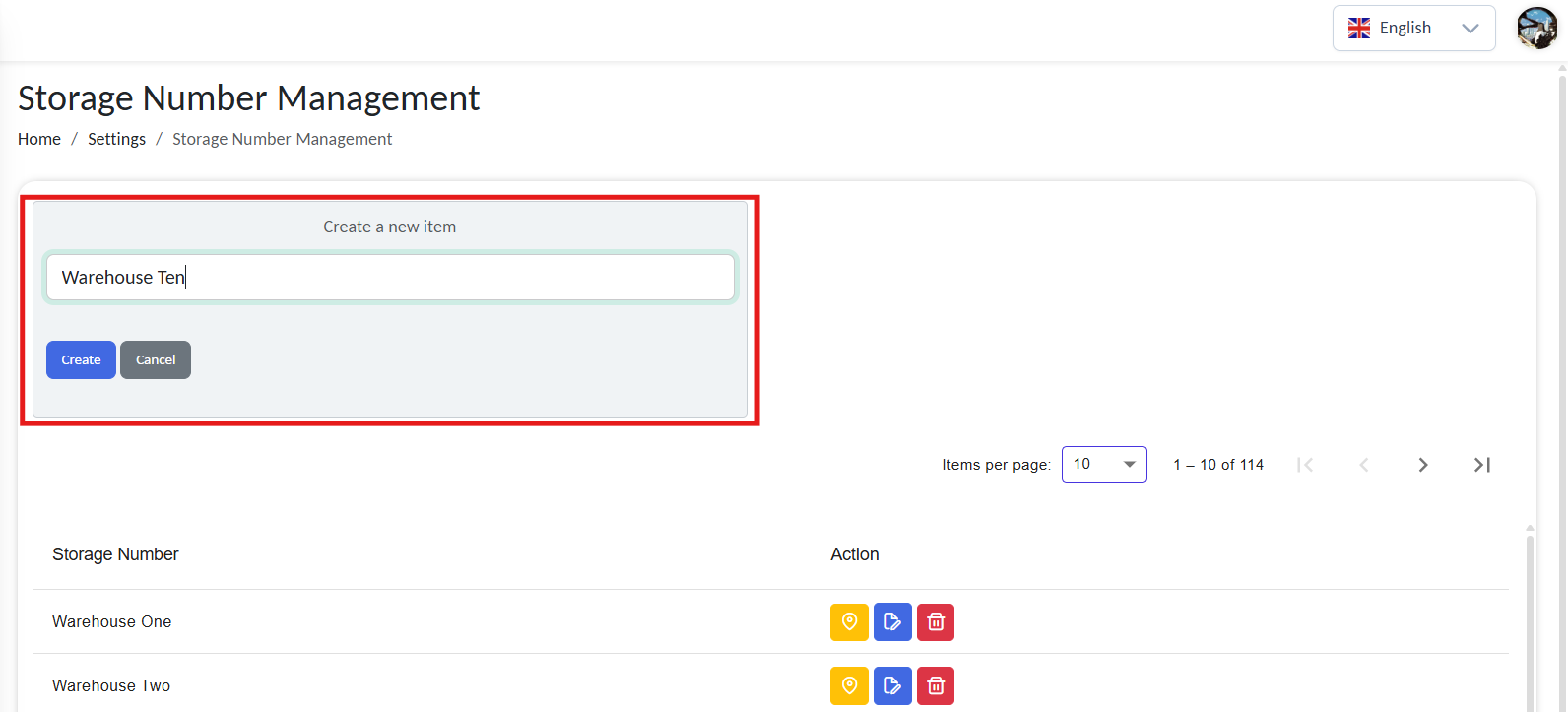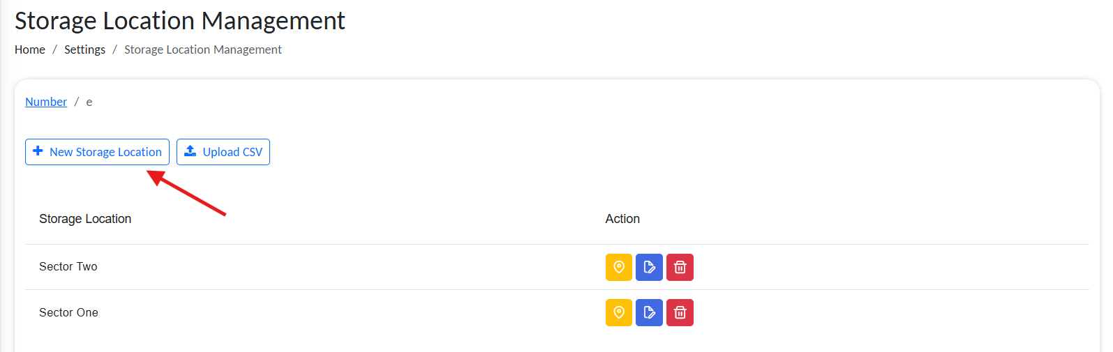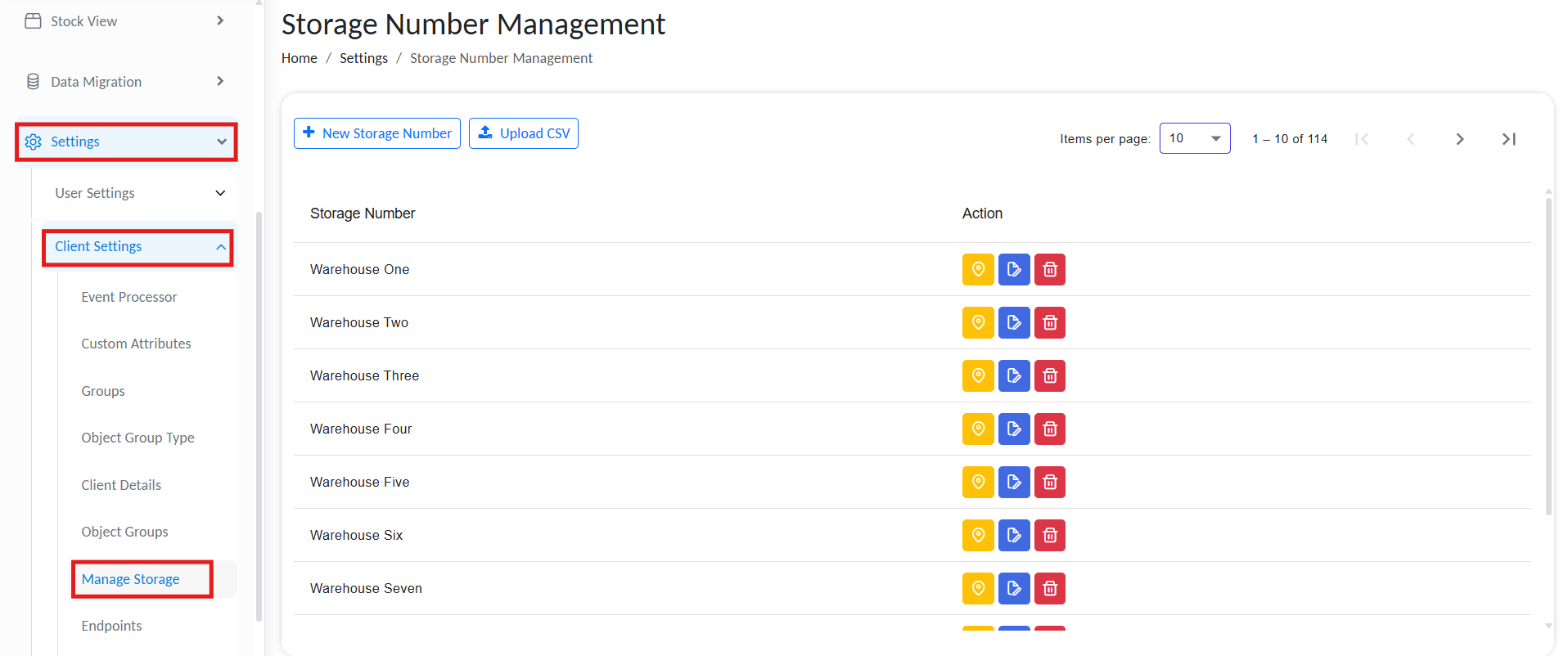 You will see a list of configured Storage Numbers. From here, you can manage the full hierarchy.