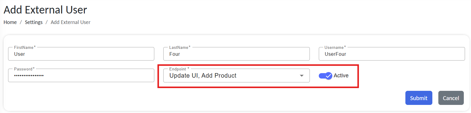When configuring an external user, you select which endpoints they can access. The external user then uses their username and password to access those endpoints.