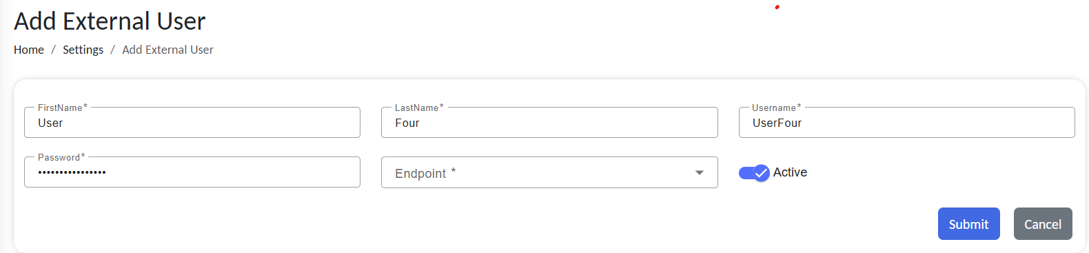 Once you are at the external user configuration page, follow the given steps to configure new user.