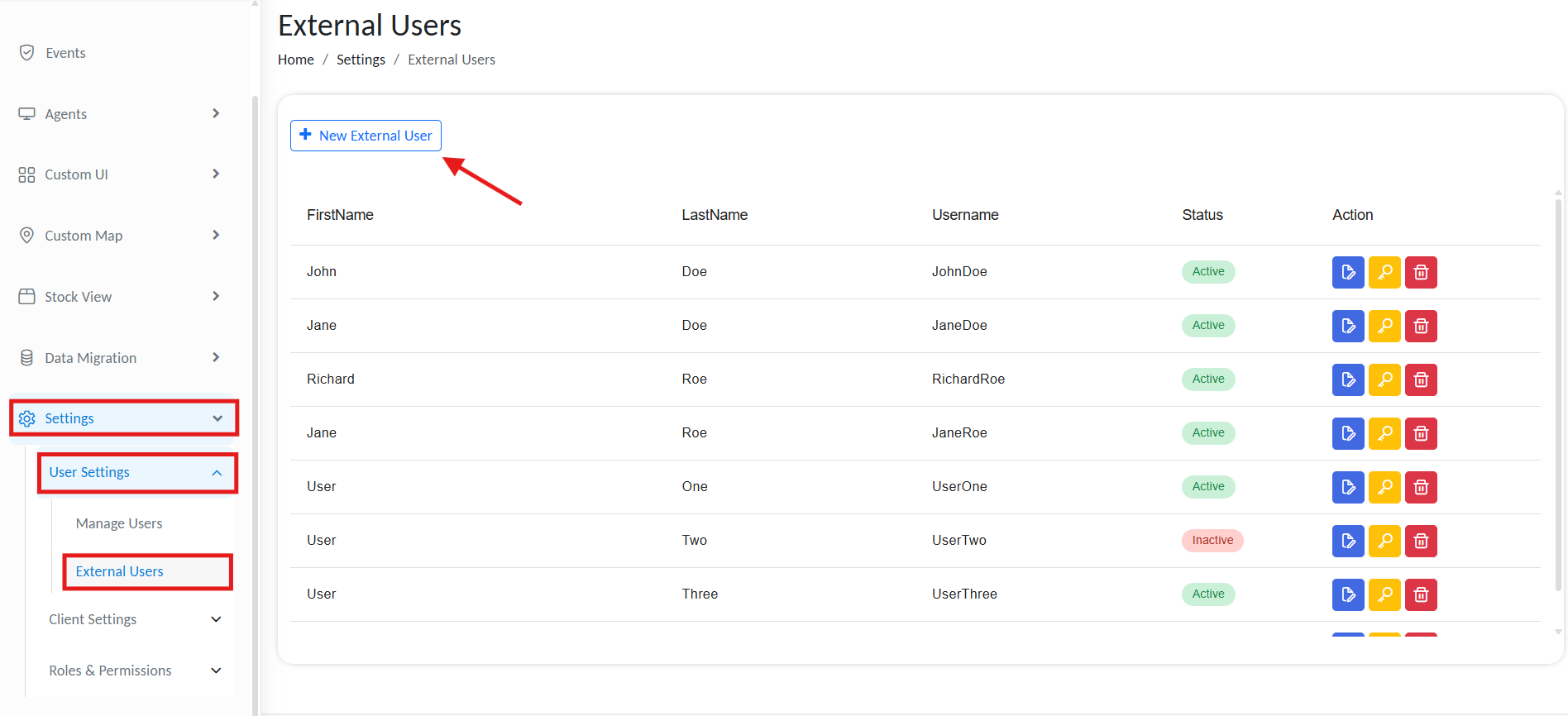 The new user will appear in the External User list along with their assigned endpoints. At any point, you can: