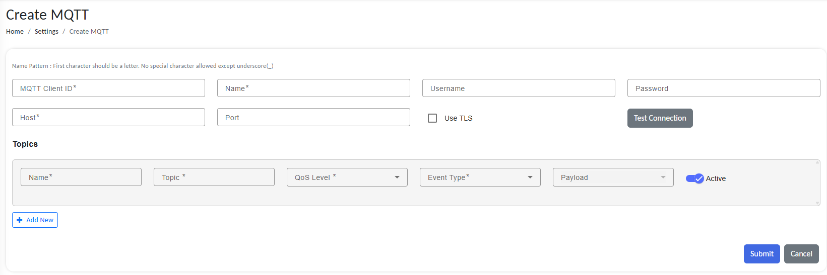 | Status remains Inactive | Incorrect broker address or authentication failure | Verify host, port, and credentials. Use Test Connection. |