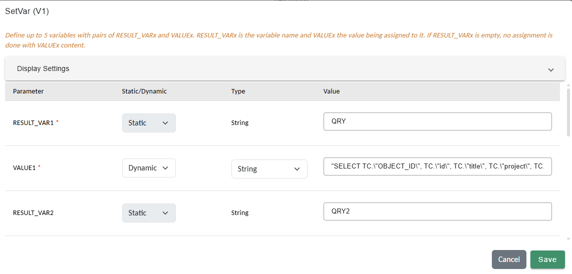 Step 2 — Build Query Using SetVar